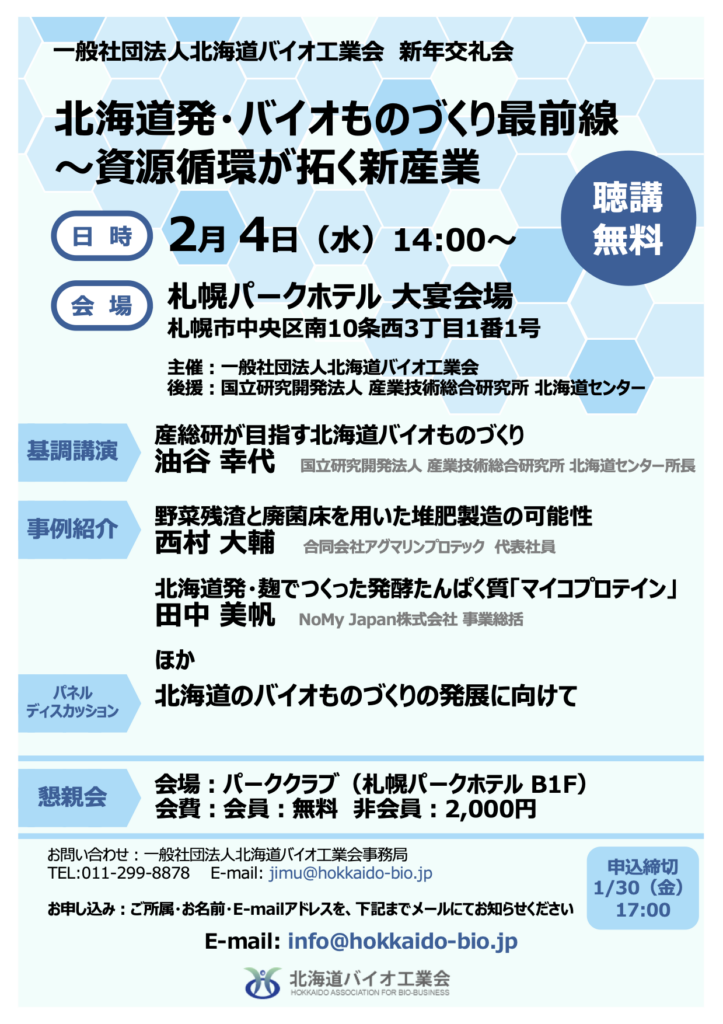 新年交礼会「北海道発・バイオものづくり最前線〜資源循環が拓く新産業」を開催します